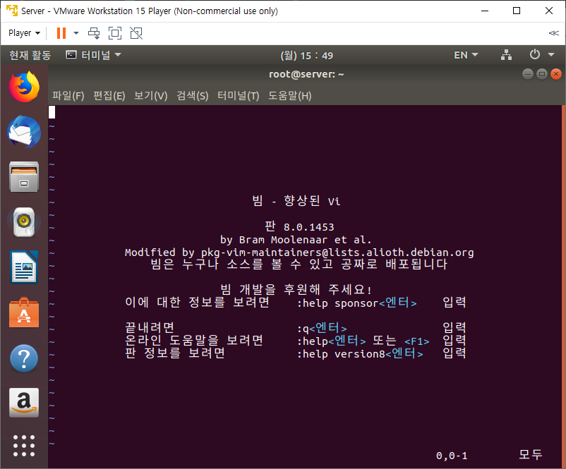 vi 에디터 실행 & 종료 vi 에디터를 사용하기 위해서는 vi 명령어를 입력하고 실행한다. vi 에디터를 종료하려면 Esc를 누르고 ':q'를 입력한 후 Enter를 누른다. 입력할 때 화면의 왼쪽 아래에 입력하는 글자가 보이는데 이렇게 작동하는 것을 'ex 모드' 또는 '라인 명령 모드'라고 한다. vi 에디터 파일 생성 vi new.text 라는 명령어를 터미널에 입력하여 ' "new.txt" [새 파일]' 이라는 문구가 있다. 만약 new.txt 파일이 이미 존재하면 그 파일을 열어서 보여주는데 이러한 상태를 '명령 모드' 라고 한다. 이 상태에서 I 또는 A를 누른다. 이는 글자를 입력(Insert) 혹은 추가(Append) 명령이다. 화면 아래 '-- 끼워넣기 --' 라는 글자가 보이는데 이러..